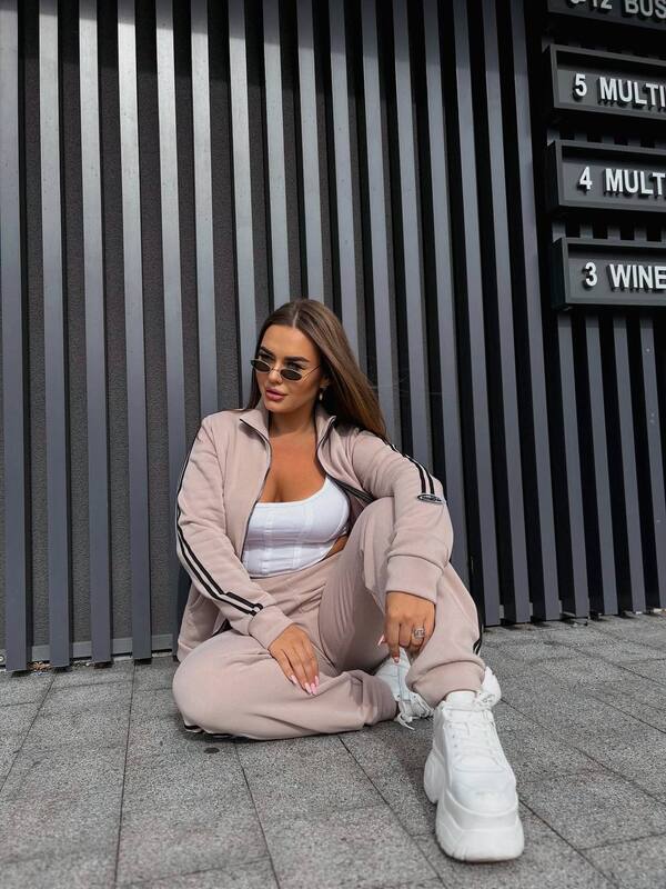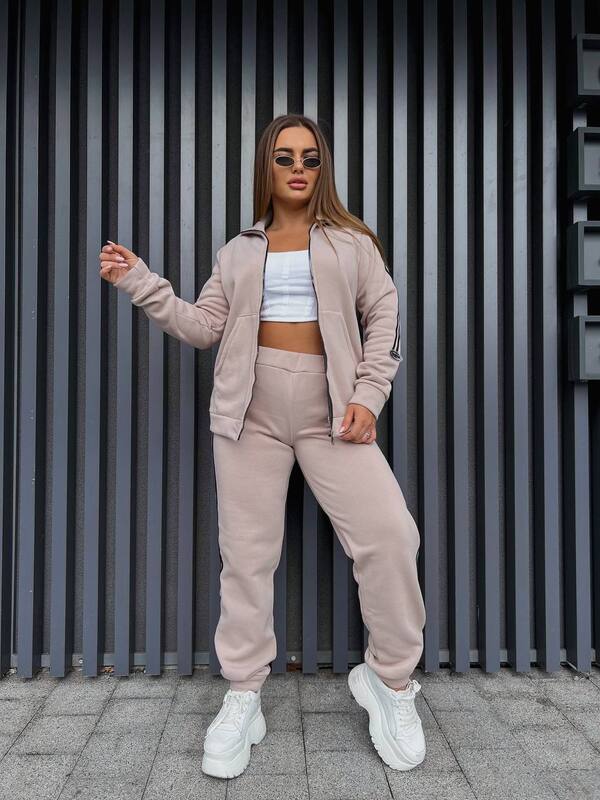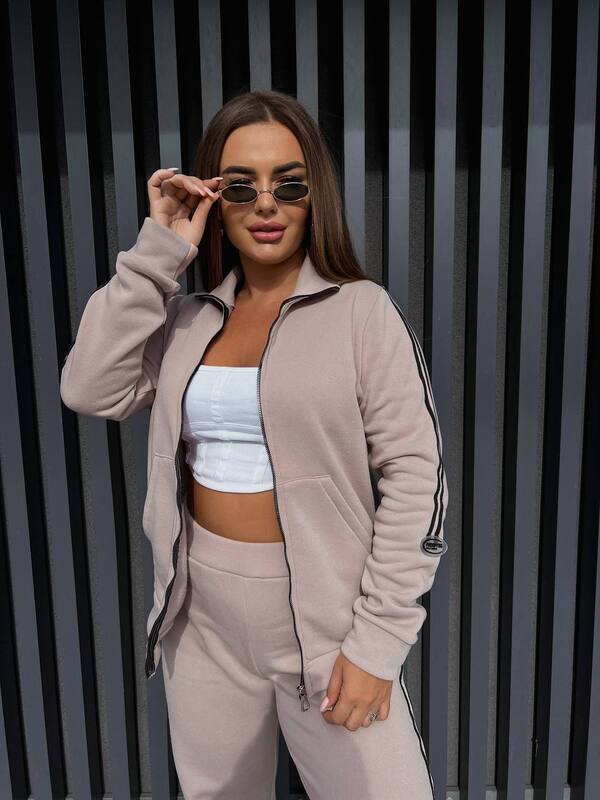 Бежевый цвет делает образ особенно стильным и универсальным — костюм легко сочетается с обувью и аксессуарами разных оттенков. Свободный крой обеспечивает свободу движений, а современный дизайн подчеркивает актуальность модели. Этот костюм станет вашим любимым вариантом для осенне-зимнего гардероба, сочетая тепло, удобство и модный внешний вид.