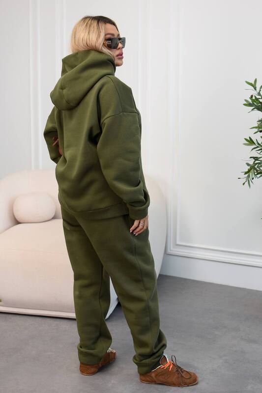 Этот комплект идеально подойдёт для прогулок, отдыха или активных выходных. Он гармонично сочетается с жилетами, пуховиками и спортивной обувью, создавая комфортные образы в стиле casual. Универсальный оттенок хаки добавляет сдержанной элегантности и прекрасно впишется в базовый гардероб. Костюм подчеркивает чувство стиля и вкус своей обладательницы, сочетая моду, комфорт и качество.