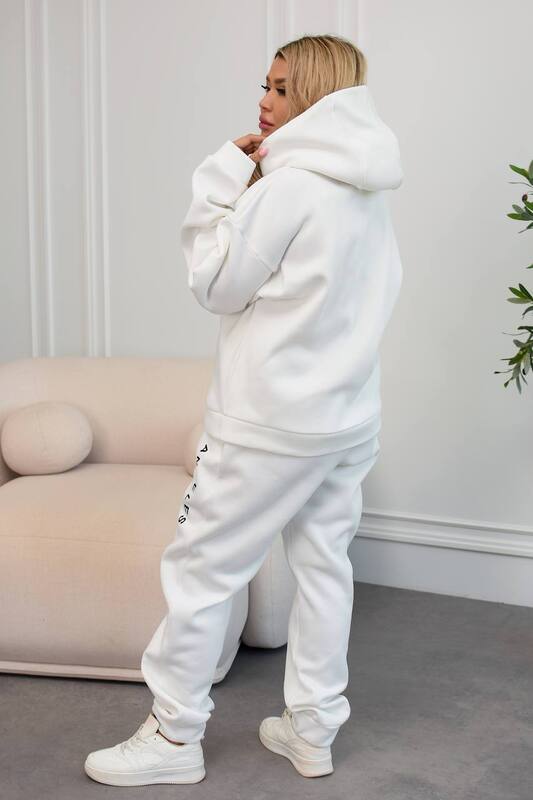 Костюм подойдёт для прогулок, путешествий и отдыха. Он легко комбинируется с жилетами, пуховиками или куртками, создавая стильные и уютные образы в стиле casual. Универсальный белый цвет добавляет свежести и лёгкости, подчёркивая современный характер модели. Это практичное и тёплое решение для женщин, ценящих комфорт, качество и моду.