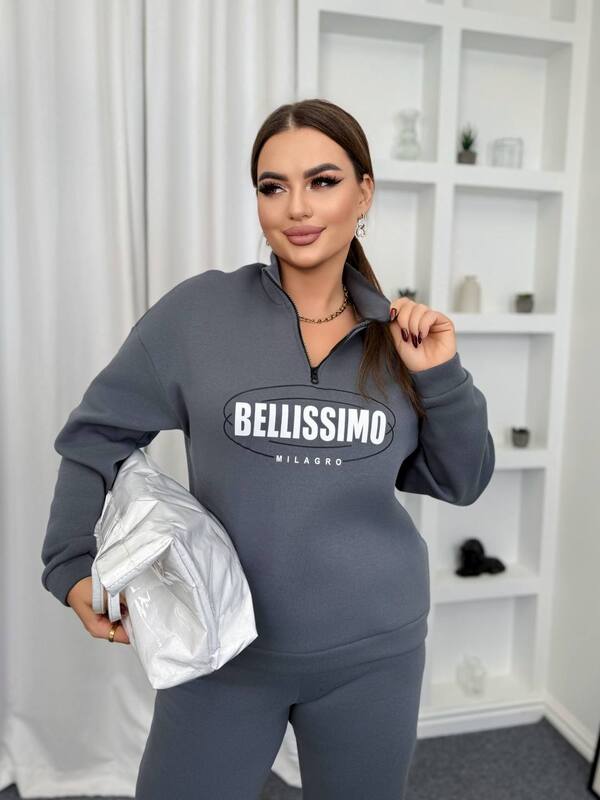 Свитшот имеет свободный крой oversize с воротником-стойкой на короткой молнии, что добавляет изделию оригинальности и делает его удобным для регулировки выреза по настроению. Дизайн украшен модным принтом “BELLISSIMO Milano”, который придаёт образу изысканный городской стиль. Эластичные манжеты на рукавах и по низу изделия обеспечивают удобную посадку, сохраняют тепло и создают аккуратный силуэт. Oversize-фасон делает модель универсальной — она подходит для любого типа фигуры, визуально стройнит и придаёт лёгкость образу.