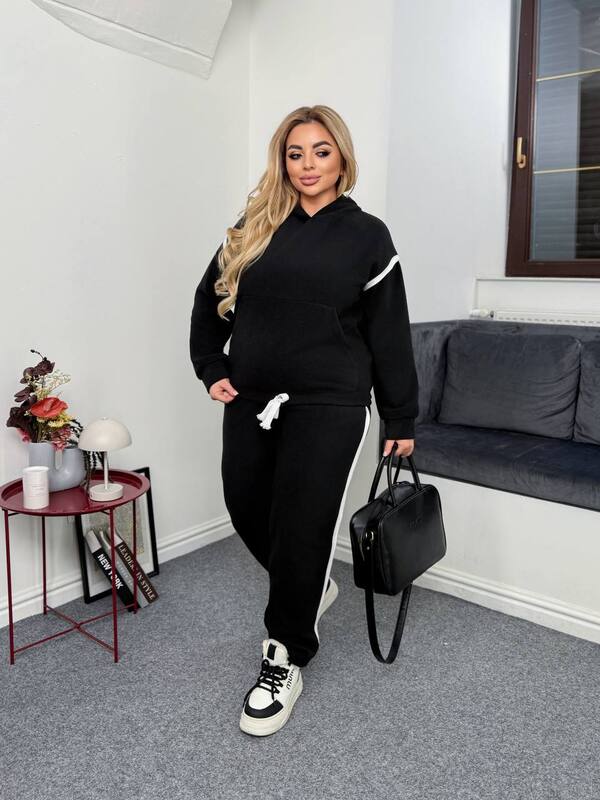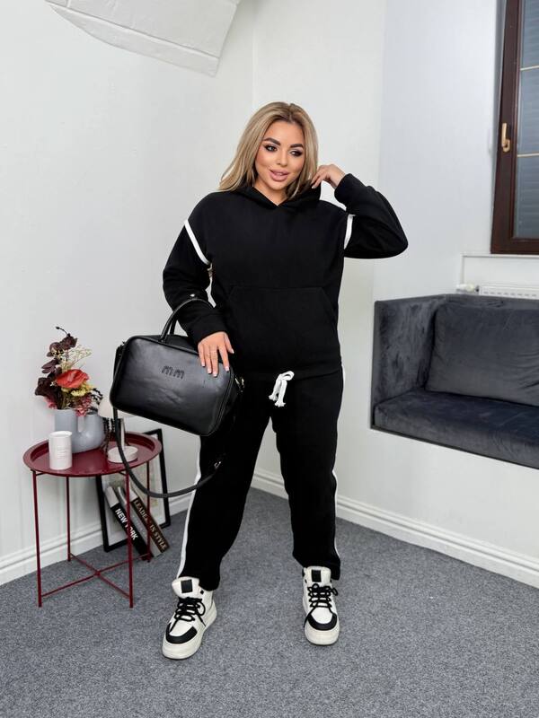 Модель идеально подходит для женщин любого возраста и типа фигуры. Костюм сочетает функциональность и эстетику, подчёркивая уверенность и чувство стиля своей обладательницы. Он прекрасно сочетается с кроссовками, ботинками или спортивной обувью, создавая модный и уютный образ для осенне-зимнего сезона.