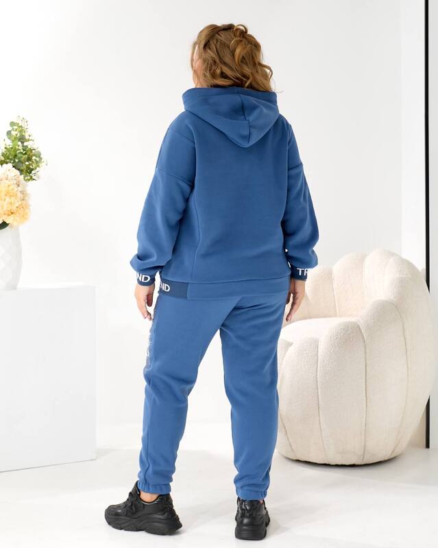 Насыщенный оттенок джинс делает костюм особенно универсальным: он выглядит свежо, современно и легко сочетает уют с яркими модными акцентами. Такой цвет подходит для любой внешности и гармонично сочетается с зимней обувью, куртками, жилетами и аксессуарами.