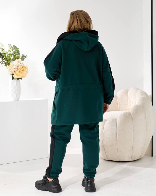 Этот спортивный костюм создан для максимального комфорта в холодный сезон и идеально подходит для ежедневной носки, прогулок и активного отдыха. Модель выполнена из плотной, мягкой и приятной к телу трехнитки на флисе, которая обеспечивает приятное ощущение тепла, не перегружает и позволяет коже дышать даже при длительном использовании. Материал хорошо держит форму и не вытягивается, сохраняет аккуратный внешний вид после стирок и устойчив к появлению катышков. Удлинённая кофта делает образ визуально более стройным и добавляет универсальности — её можно носить как самостоятельный элемент верхней одежды в прохладные дни.