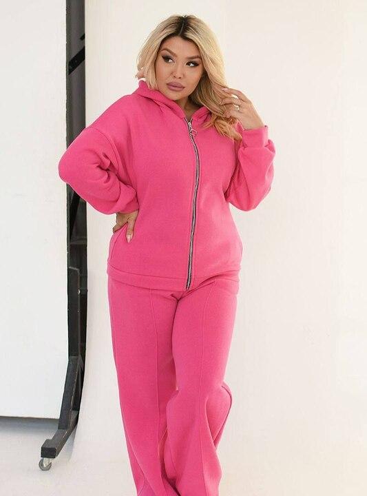 Отзывы о Спортивный костюм женский из трехнитки на флисе худи на молнии с капюшоном и прямые брюки зимний k-126673