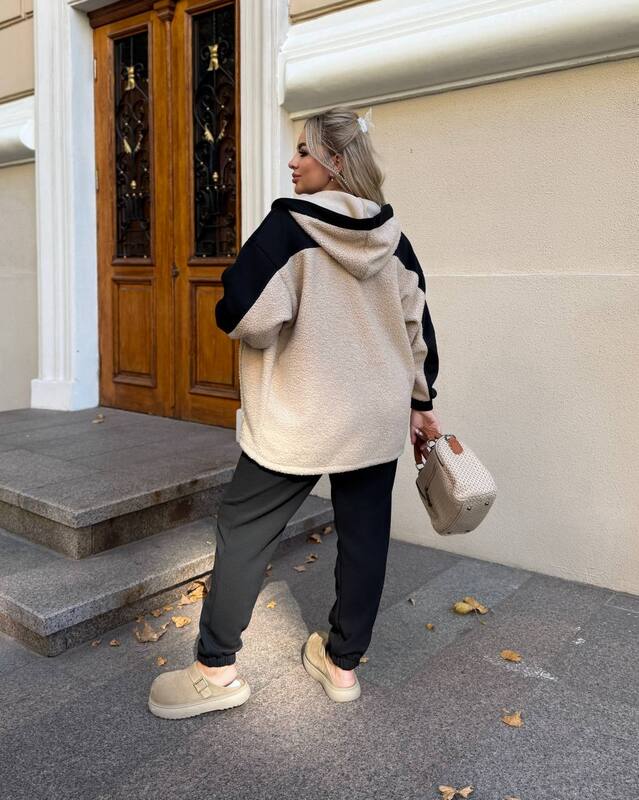- Ткань: теплий еко баранчик на флісі, комбінований чорною Хб стрейч триниткою на флісі