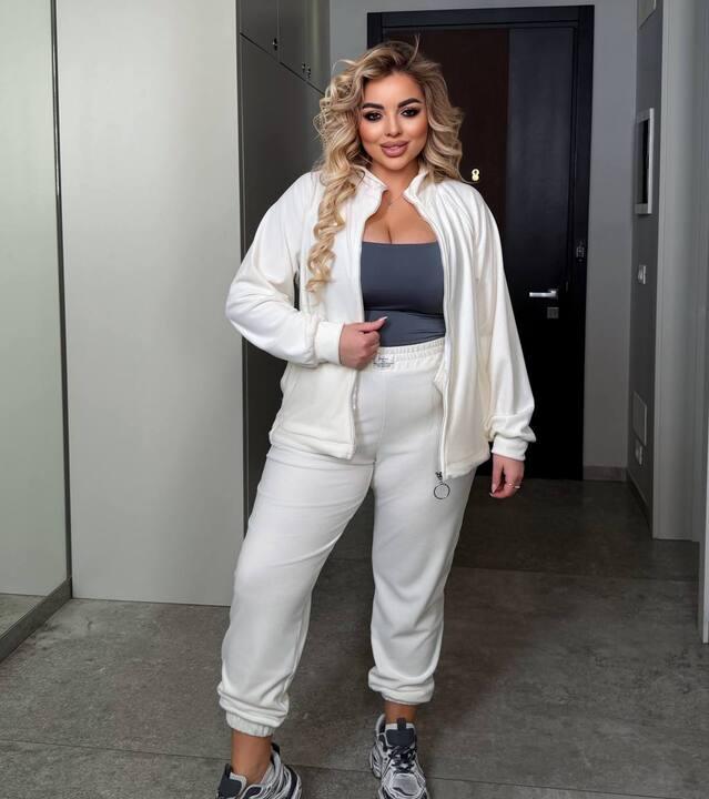 Этот спортивный костюм — практичный готовый образ на каждый день, когда хочется выглядеть аккуратно и современно, но при этом чувствовать максимальный комфорт. Велюр делает комплект особенно приятным в носке: ткань мягкая, гладкая, уютная по ощущениям и визуально смотрится опрятно, поэтому образ выглядит более собранным и «дороже», чем в обычном трикотаже. Такой костюм отлично подходит для активного ритма — прогулок, поездок, повседневных дел и дороги.