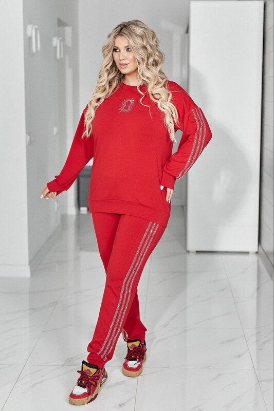 Фактичні виміри: ; За 52-54 розміром. ; Кофта: ; Довжина 70 см; Рукава від горловини- 69 см. ; ОГ - 120 см. ; По подолу- 108 см.Штани: ; Довжина по зовнішньому шву- 105 см. ; Довжина по внутрішньому шву- 76 см. ; Об'єм стегон - 120 см. ; до кожного н.. Читать полностью