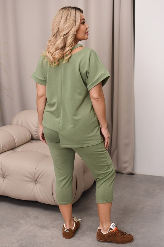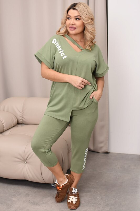 Доступные размеры :[44-46, 48-50, 52-54, 56-58] Розмір 44-46Футболка: ОГ = ОТ – 100 см, довжина 70/60 см, рукав від горловини – 25 смБриджі: зовн./внутр. шов – 77/53 см, обхват талії (вільно/розтягнуто) – 76/96 см, обхват стегон – 102 смРозмір 48-50Ф.. Читать полностью