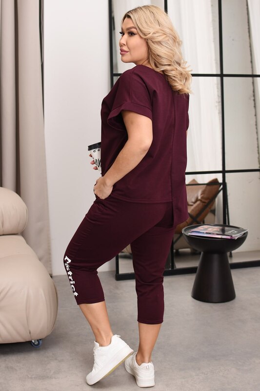 Доступные размеры :[44-46, 48-50, 52-54, 56-58] Розмір 44-46Футболка: ОГ = ОТ – 100 см, довжина 70/60 см, рукав від горловини – 25 смБриджі: зовн./внутр. шов – 77/53 см, обхват талії (вільно/розтягнуто) – 76/96 см, обхват стегон – 102 смРозмір 48-50Ф.. Читать полностью