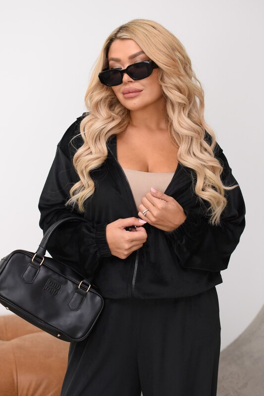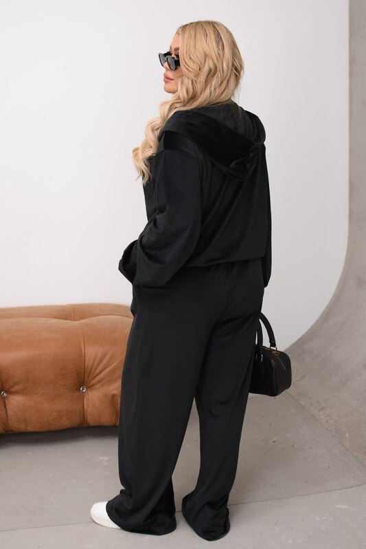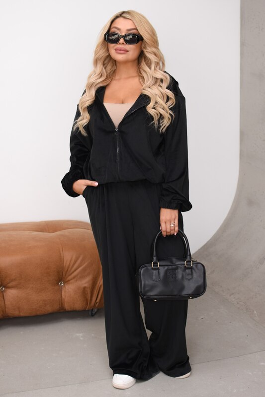 Комплект можно носить вместе как готовый образ или комбинировать отдельно: кофту сочетать с джинсами, леггинсами или базовыми брюками, а велюровые брюки — с футболками, лонгсливами, топами и свитшотами. Это практичная модель для тех, кто любит удобную одежду, но не хочет отказываться от стильного и современного вида.