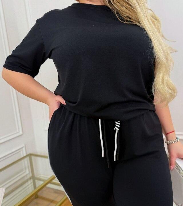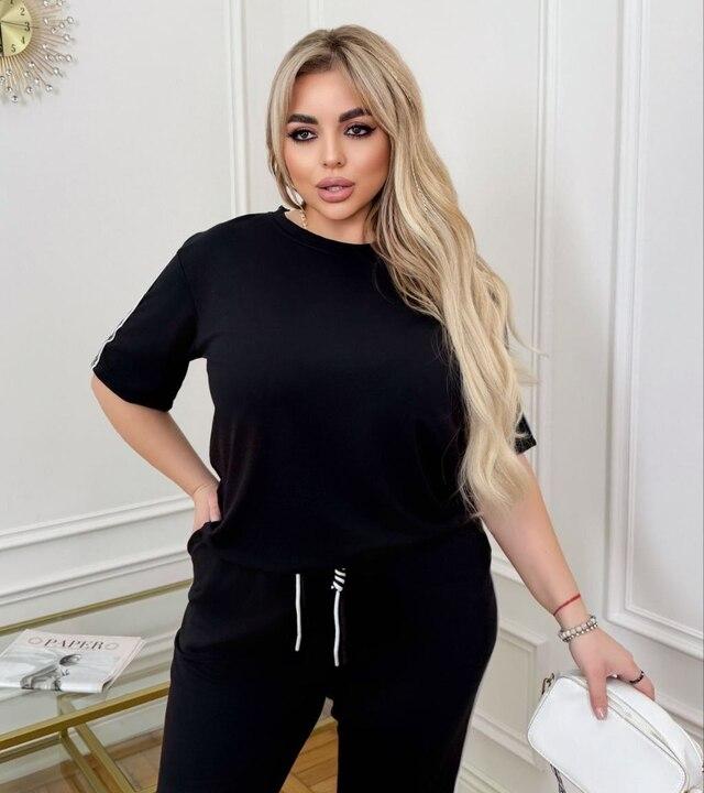 Комплект состоит из футболки и брюк-джоггеров, что делает его особенно универсальным и востребованным. Футболка свободной посадки с коротким рукавом выглядит легко и современно, хорошо садится по фигуре и обеспечивает комфорт даже в активном движении. Лампасы по рукавам добавляют образу динамики и делают модель более выразительной. За счет такого акцента комплект смотрится не просто базово, а действительно стильно и актуально.