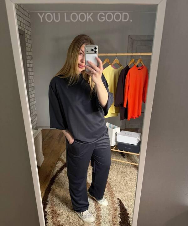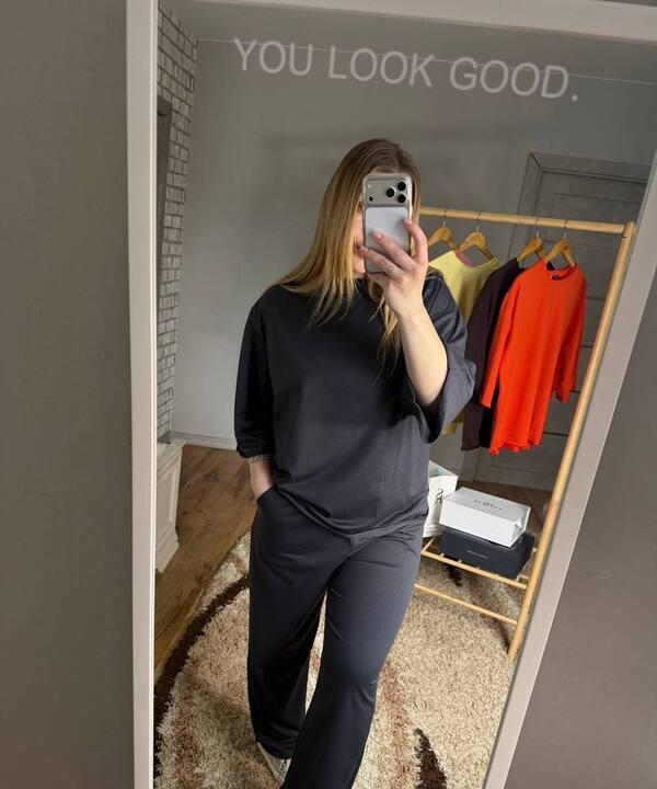 Костюм можно носить как готовым комплектом, так и по отдельности, сочетая кофту и брюки с другими элементами гардероба. Он хорошо комбинируется с кроссовками, кедами, жилетами, легкими куртками и объемными сумками. Это удачный выбор для женщин, которые ценят свободу движений, удобную посадку и универсальный повседневный стиль. Такой комплект помогает чувствовать себя уверенно, комфортно и выглядеть актуально каждый день.