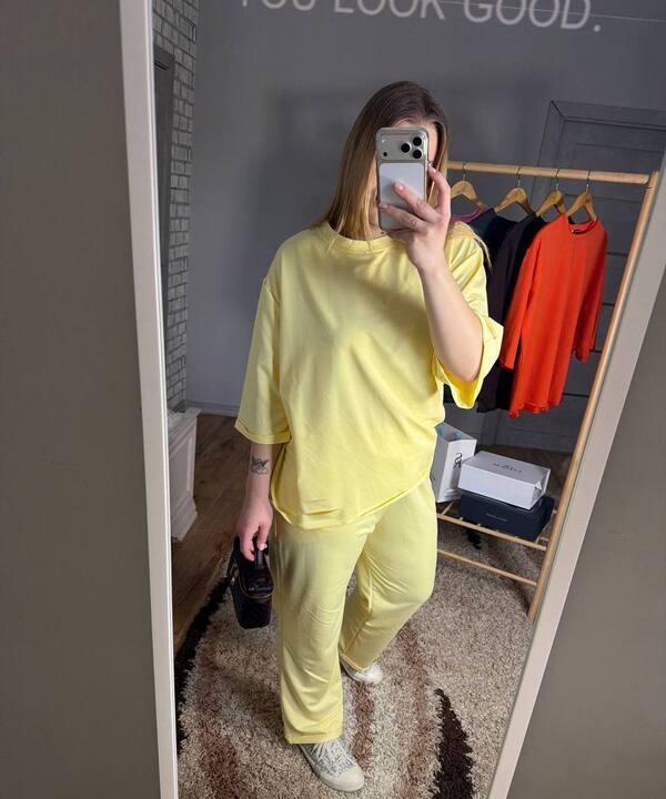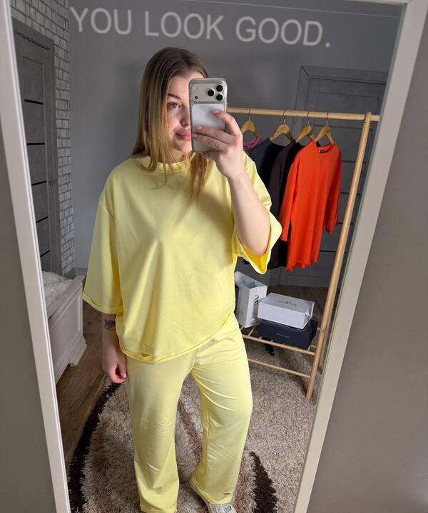 Костюм можно носить как готовым комплектом, так и по отдельности, сочетая кофту и брюки с другими элементами гардероба. Он хорошо комбинируется с кроссовками, кедами, жилетами, легкими куртками и объемными сумками. Это удачный выбор для женщин, которые ценят свободу движений, удобную посадку и универсальный повседневный стиль. Такой комплект помогает чувствовать себя уверенно, комфортно и выглядеть актуально каждый день.