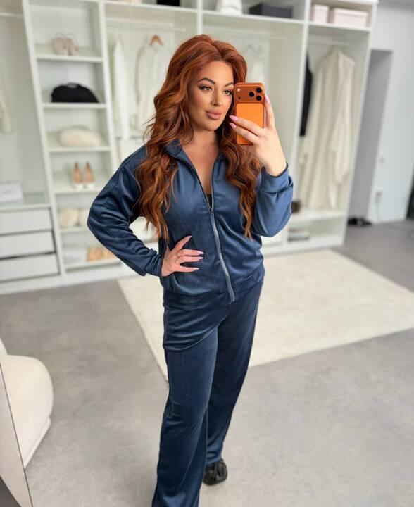 Материал — велюр, который особенно ценят за его мягкость, приятную фактуру и красивый внешний вид. Ткань деликатно переливается, выглядит выразительно и делает комплект более дорогим и эффектным. Велюр приятно ощущается на теле, создает ощущение уюта и делает костюм по-настоящему комфортным для ежедневной носки. Это именно тот вариант, который хочется носить снова и снова благодаря мягкости, удобной посадке и приятным тактильным ощущениям.