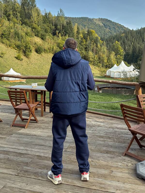 Отзывы о Костюм-тройка мужской утеплённый: свитшот и брюки из трёхнитки на флисе с жилетом из плащевки осенне-зимний k-124482