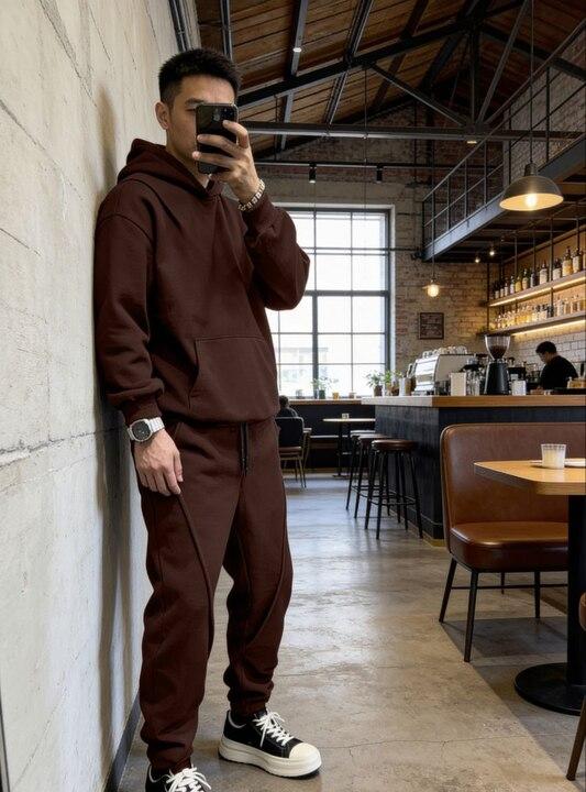 Отзывы о Спортивный костюм мужской из двухнитки петля с худи свободного кроя и джоггерами с манжетами демисезонный k-128405