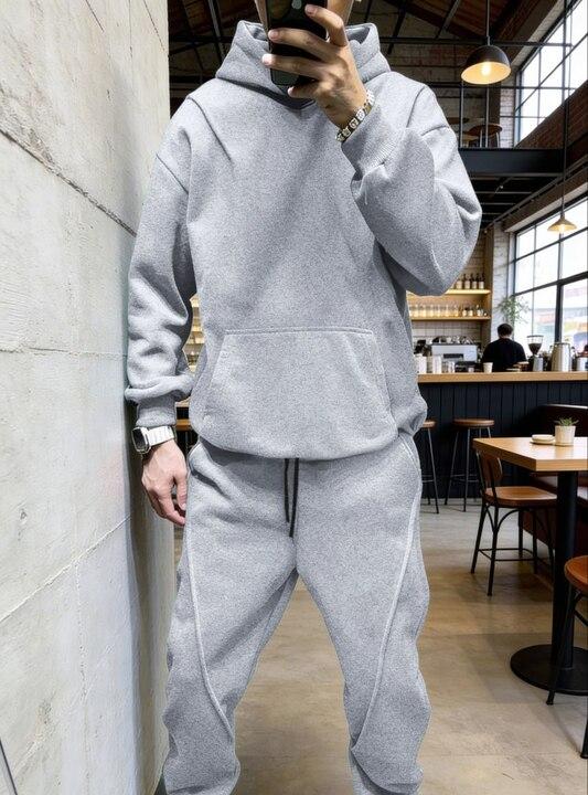 Отзывы о Спортивный костюм мужской из двухнитки петля с худи свободного кроя и джоггерами с манжетами демисезонный k-128407
