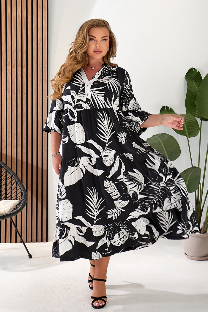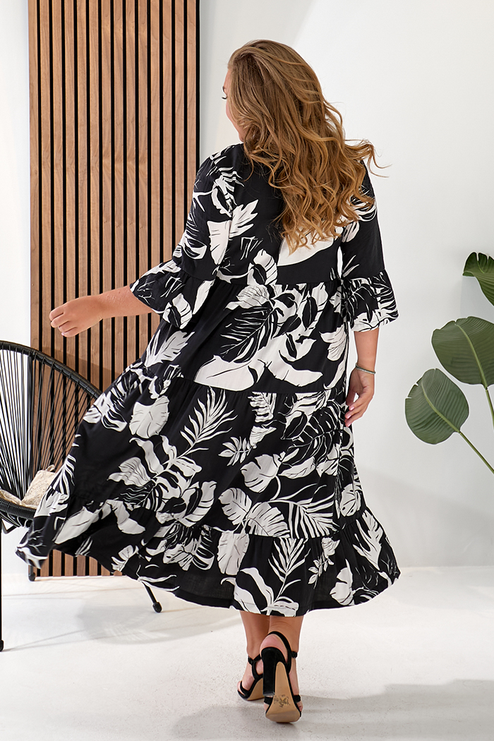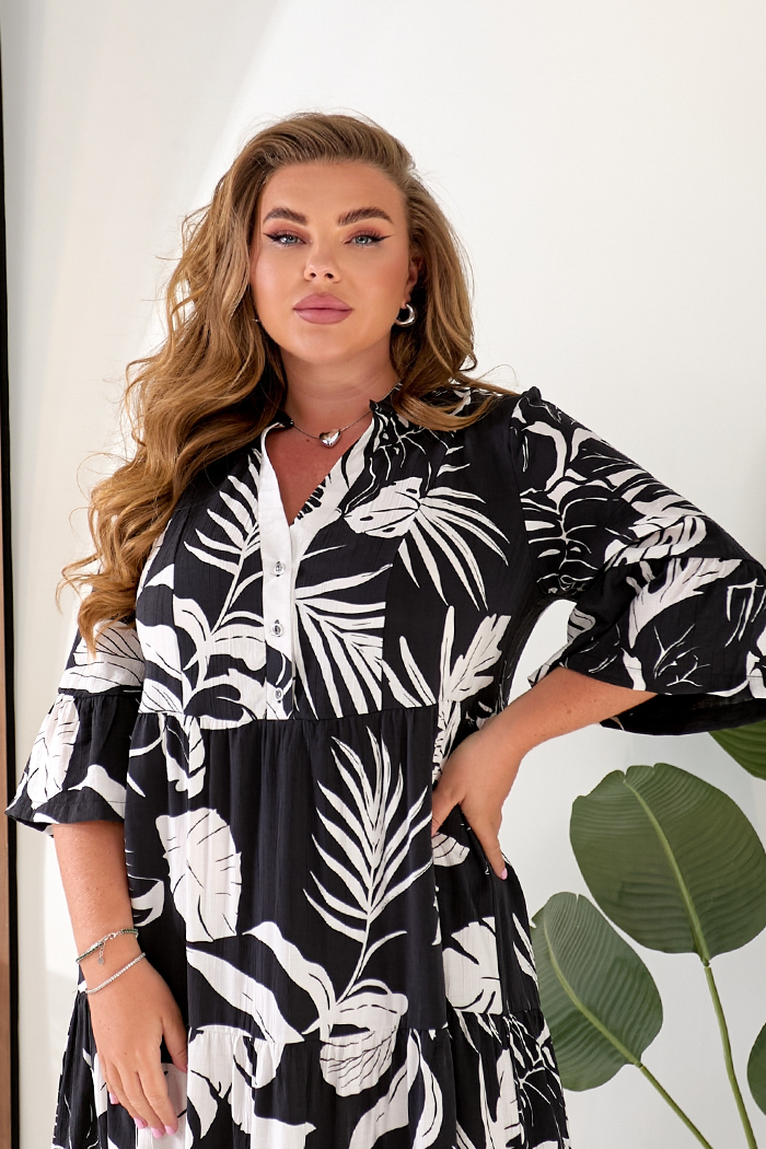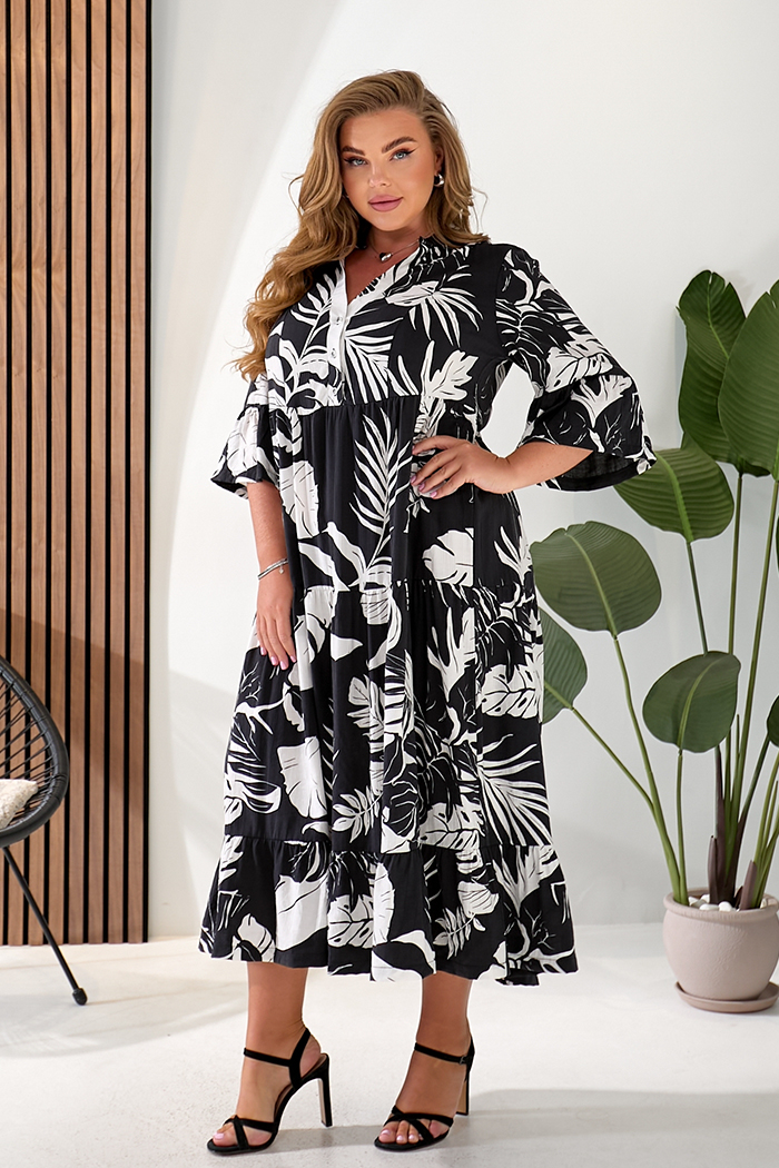 Доступные размеры :[54, 56] Сукня міді напівприлеглого силуету. Втачний рукав ¾, з притачною оборкою, по шву приточування складання. Сукня відрізна по лінії талії, ліф по центру з фігурною планкою, із застібкою на гудзики. Спідниця з трьох частин, вс.. Читать полностью