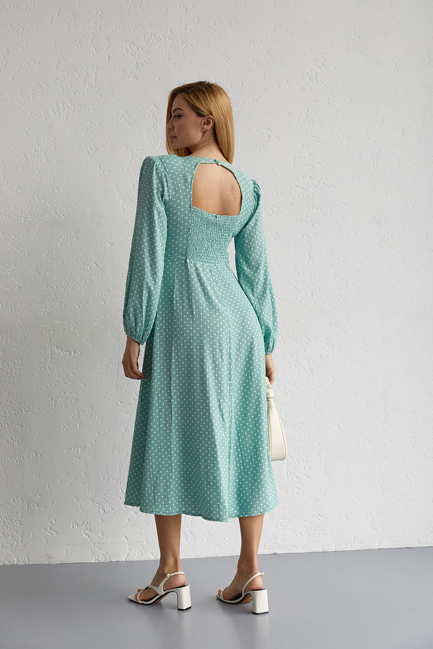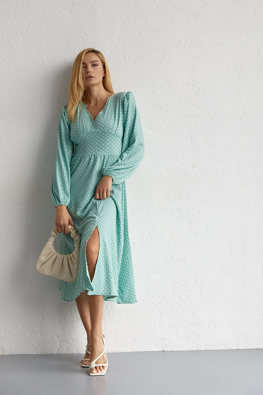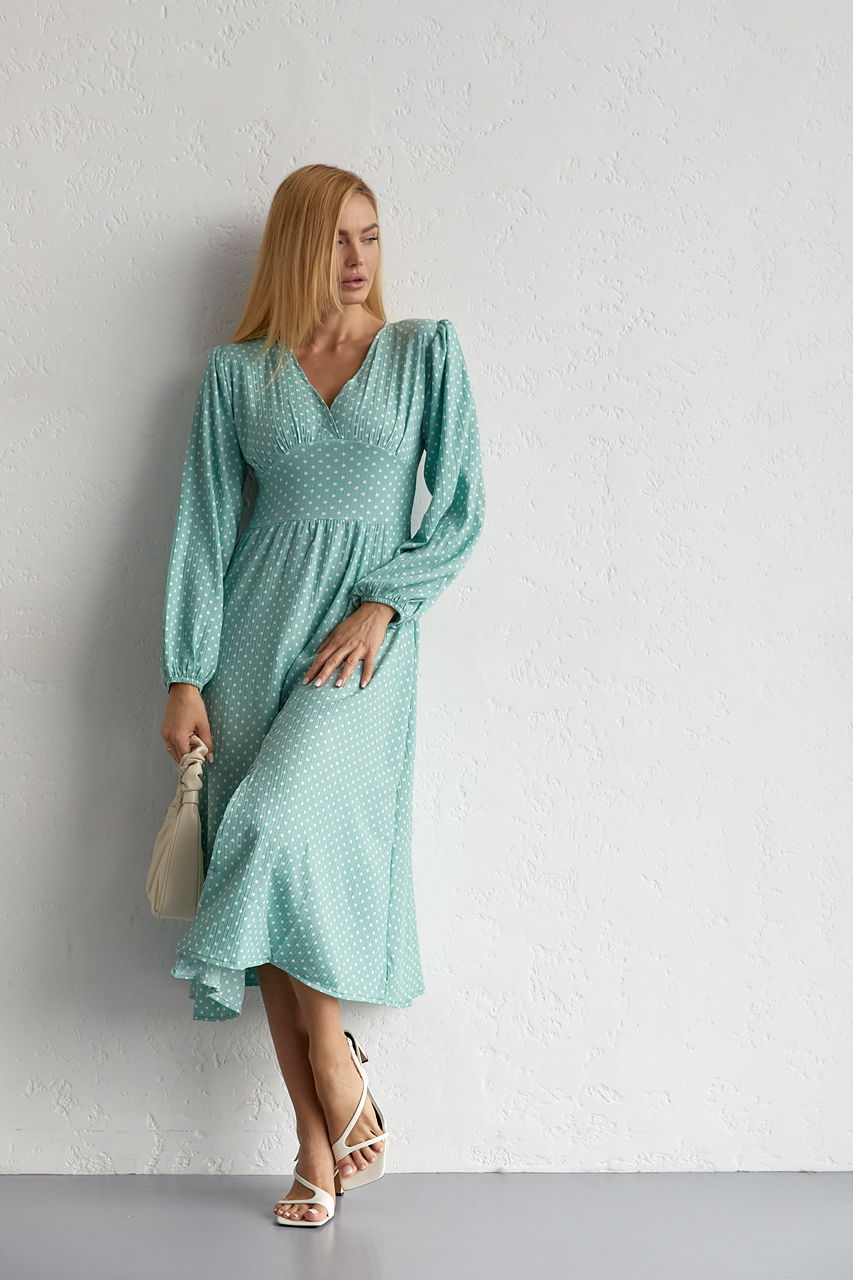 Колір:м'ятнийЗастібка:гудзикВізерунок:горохСклад тканини:90% поліестер, 10% еластанФасон:з розрізомСезон:ВеснаСтиль:романтичнийТканина:Штучний шовкРозмір на фото:SПараметри моделі:86*60*92 зріст 173Країна:ТуреччинаКлас:Середній класВид виробів:Плаття.. Читать полностью