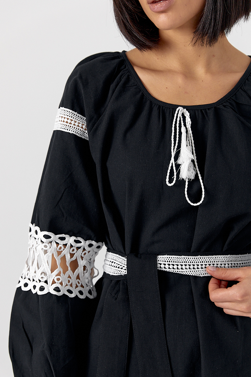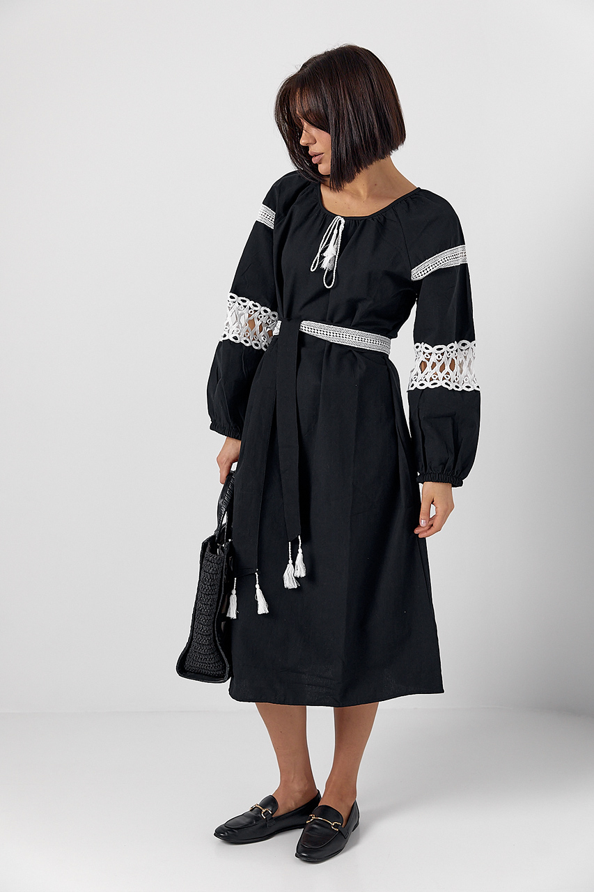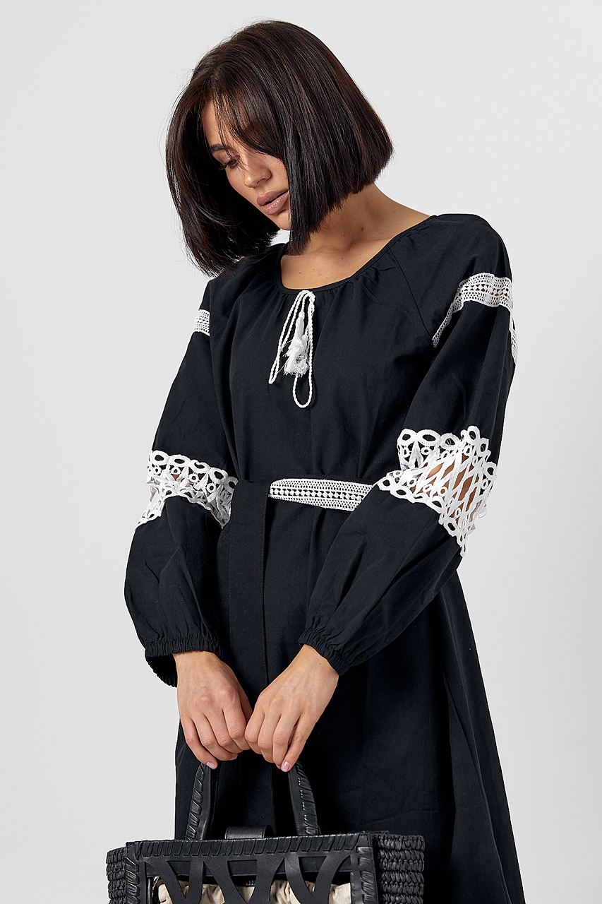 Сукня зі вставками макраме на поясі та рукавах Ls-1157