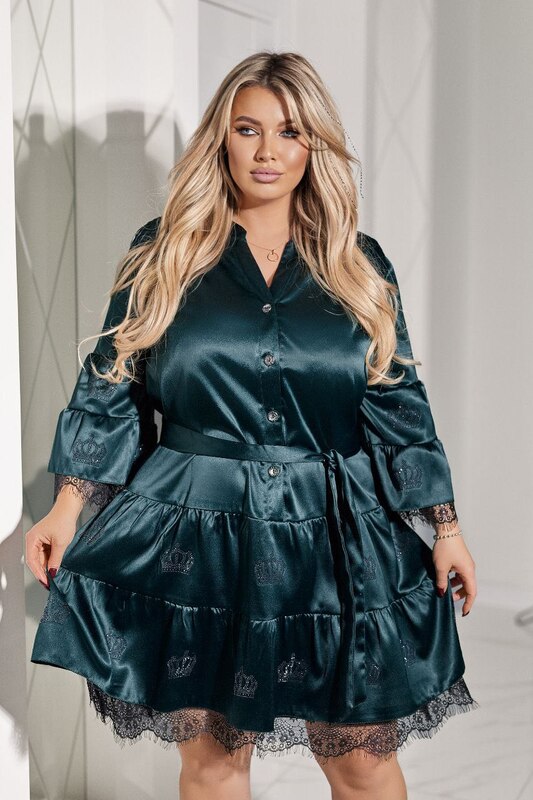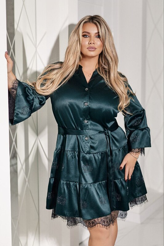 Доступные размеры :[48-50, 52-54, 56-58] Фактичні виміри:За 52-54 розміром. Довжина від плеча- 97 см, з мереживом - 103 см. Рукава - 45 см.ОГ - 116 см.ОТ- 120 см.Обьем стегна- 126 см.До кожного наступного розміру додавати + 8см.Размер: 48-50, 52-54, .. Читать полностью