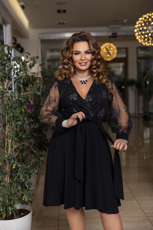 - Ткань: креп дайвінг + сітка флок з блискітками