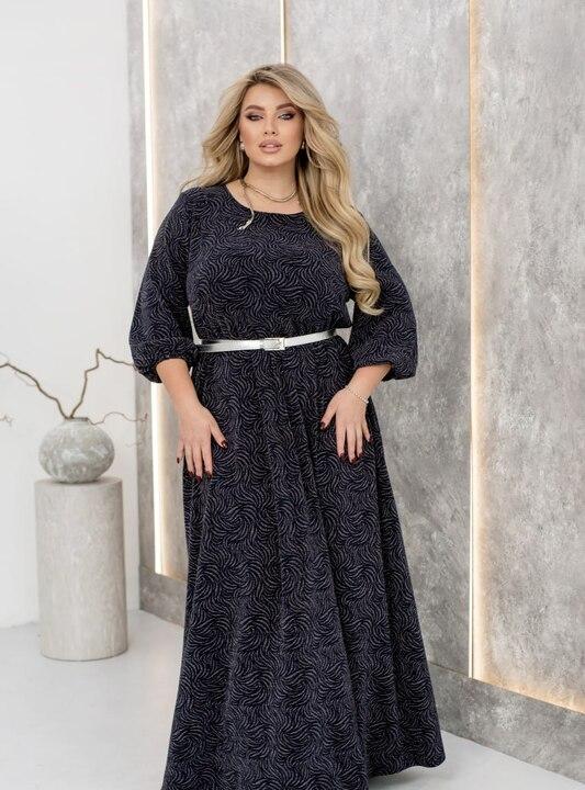 Рукава длиной три четверти с мягкими резинками на запястьях создают аккуратный объём и добавляют образу изящный акцент, сохраняя комфорт в носке. В комплект входит пояс, с помощью которого можно подчеркнуть талию и завершить образ, сделав его более собранным и выразительным. Это платье станет отличным выбором для праздничных вечеров, торжественных мероприятий и особых событий, когда хочется выглядеть уверенно, элегантно и по-настоящему эффектно.