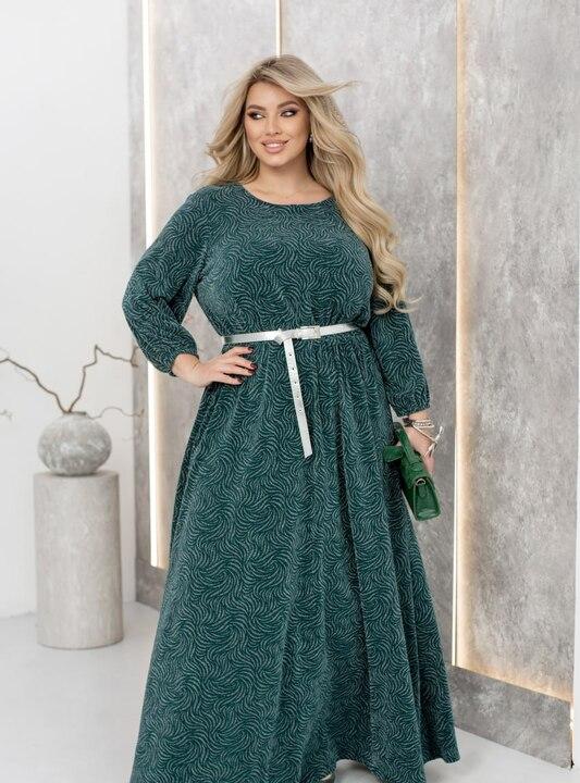 Рукава длиной три четверти дополнены мягкими резинками на запястьях, что создаёт аккуратный объём и добавляет образу изящный акцент, сохраняя при этом комфорт. Пояс из комплекта позволяет выделить талию и завершить образ, делая его более собранным и выразительным. Это платье станет отличным выбором для праздничных вечеров, торжественных мероприятий и особых моментов, когда важно выглядеть элегантно, уверенно и по-настоящему эффектно.
