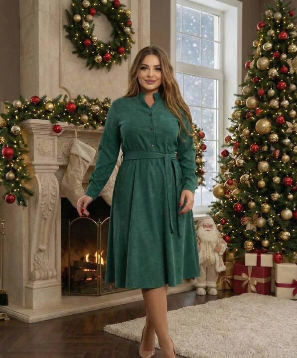 Женское платье длины миди выполнено из мягкого микровельвета с выразительной, но при этом деликатной текстурой, которая придаёт образу аккуратность и визуальную глубину. Ткань приятна к телу, хорошо сохраняет форму и обеспечивает комфорт в течение всего дня, что особенно важно в осенне-зимний период. Материал выглядит благородно и опрятно, оставаясь практичным для повседневной носки.