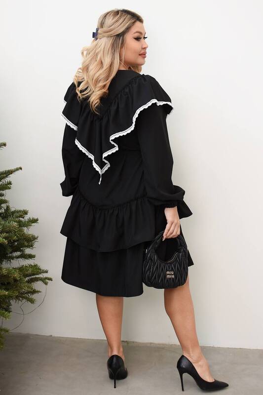 Доступные размеры :[48-50, 52-54, 56-58] 48-50ОГ: 110 смД. виробу: 102 см52-54ОГ: 118Д. виробу: 103 см56-58ОГ: 126 смД. виробу: 104 смТкань: євро костюмка оздоблення біле лляне мереживоЦвет: чорнийРазмер: 56-58, 48-50, 52-54Длина по спинке: 102-104 с.. Читать полностью