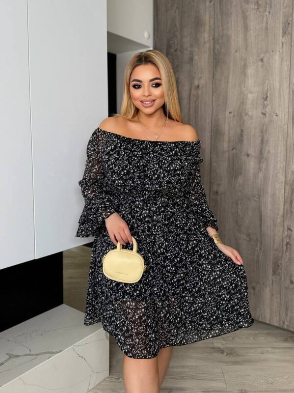 Платье женское шифоновое с подкладкой цветочным принтом и рукавами воланами больших размеров весенне-летнее k-129390