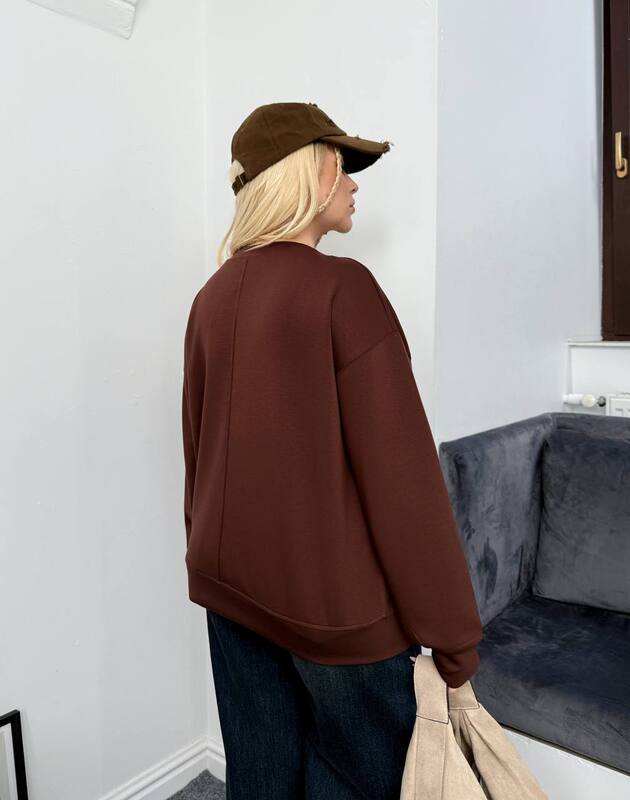 Такой свитшот отлично подходит для осенне-зимнего сезона — он тёплый, уютный и стильный. Его легко сочетать с джинсами, брюками, лосинами или юбкой, создавая повседневные и городские образы. Благодаря качественному пошиву и продуманным деталям, модель выглядит дорого и аккуратно. Этот свитшот станет базовым элементом гардероба для прогулок, встреч или комфортного отдыха, сочетая удобство и элегантный минимализм.