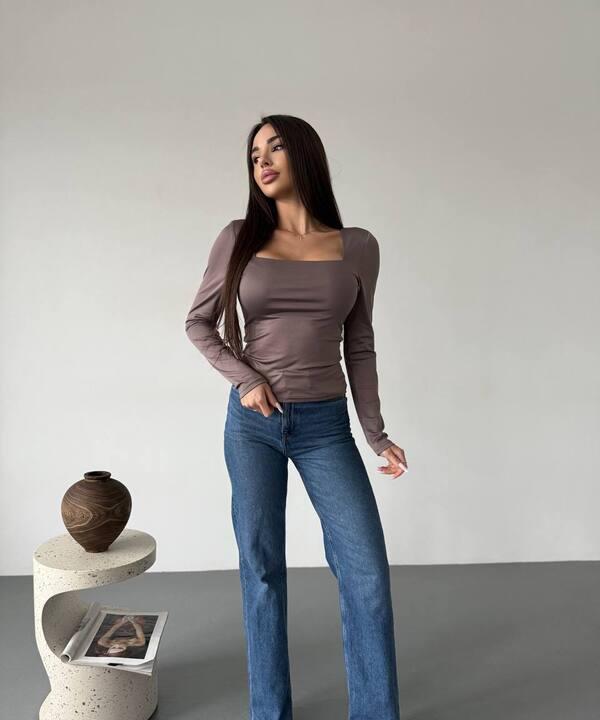 Лонгслив женский из микродайвинга приталенный с длинным рукавом и квадратным вырезом весенний  k-127957
