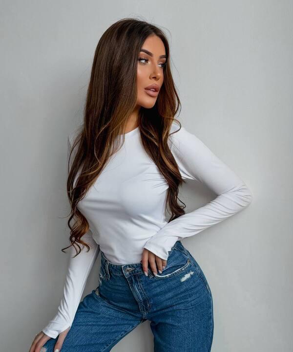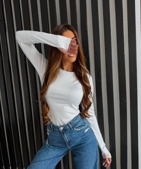 Фасон выполнен в актуальном облегающем стиле с круглой горловиной и длинными рукавами. Это делает модель максимально универсальной и удобной для самых разных сочетаний. Лонгслив можно носить как самостоятельный верх или использовать как основу под жакет, жилет, кардиган, бомбер или куртку. Он прекрасно сочетается с джинсами, классическими брюками, юбками, карго, шортами и трикотажными комплектами.