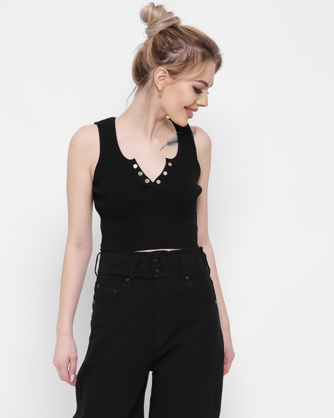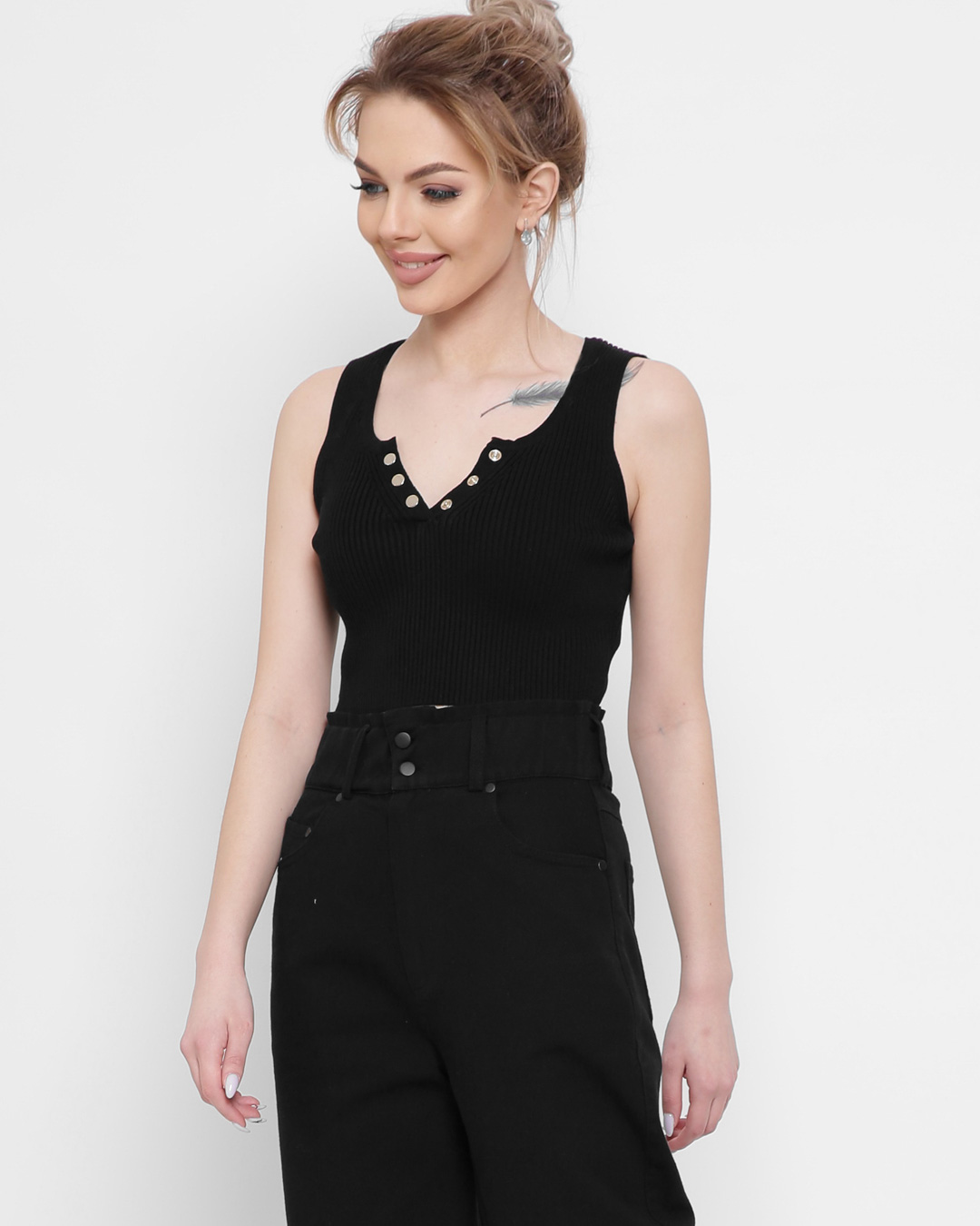 Доступные размеры :[ONE SIZE] Размер ONE SIZE:Рост модели:170 смДлина изделия:38Стильный топ из мягкой и приятной к телу ткани. Спереди вырез на бретельках и застежка на ряд пуговиц. Облегающий силуэт сядет по фигуре. Сочетайте с любимыми брюками или.. Читать полностью