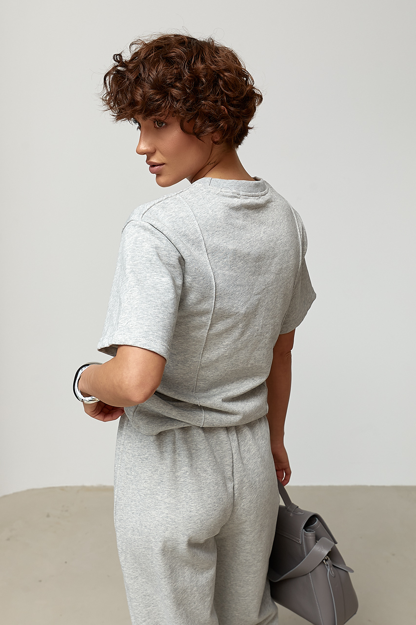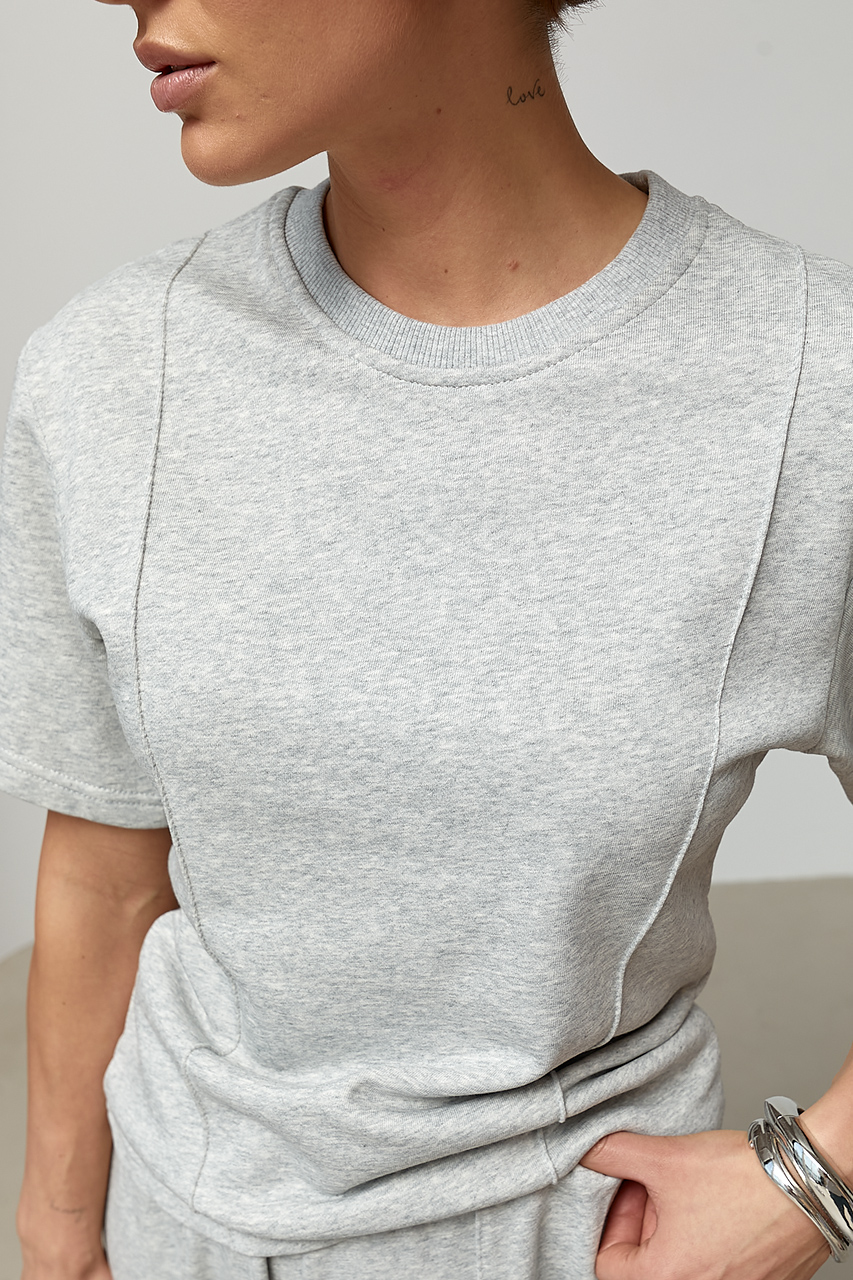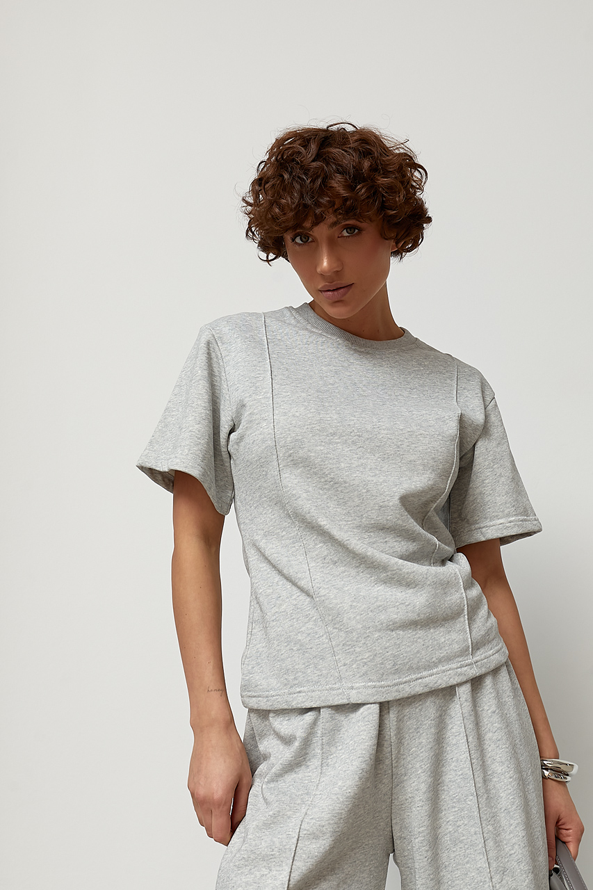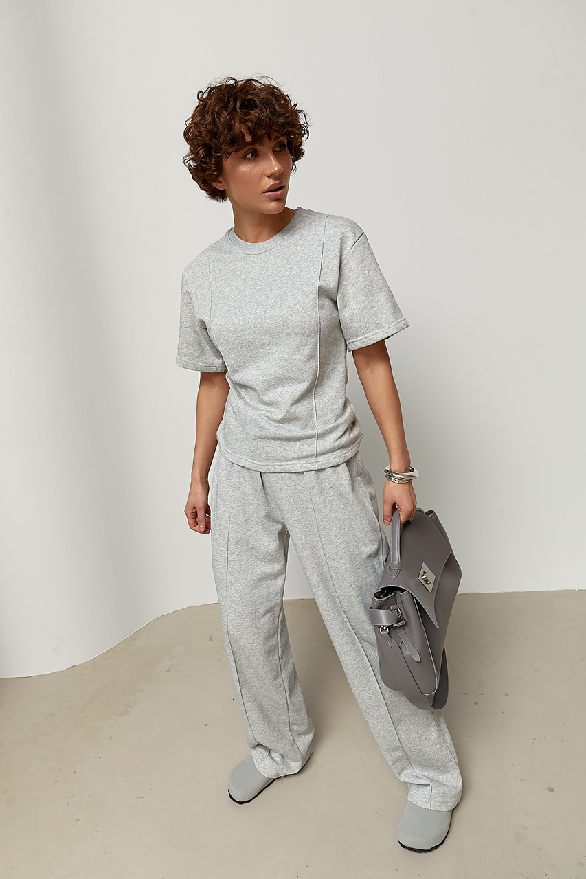 Трикотажний костюм із футболки та штанів з декоративними швами  Ls-1373