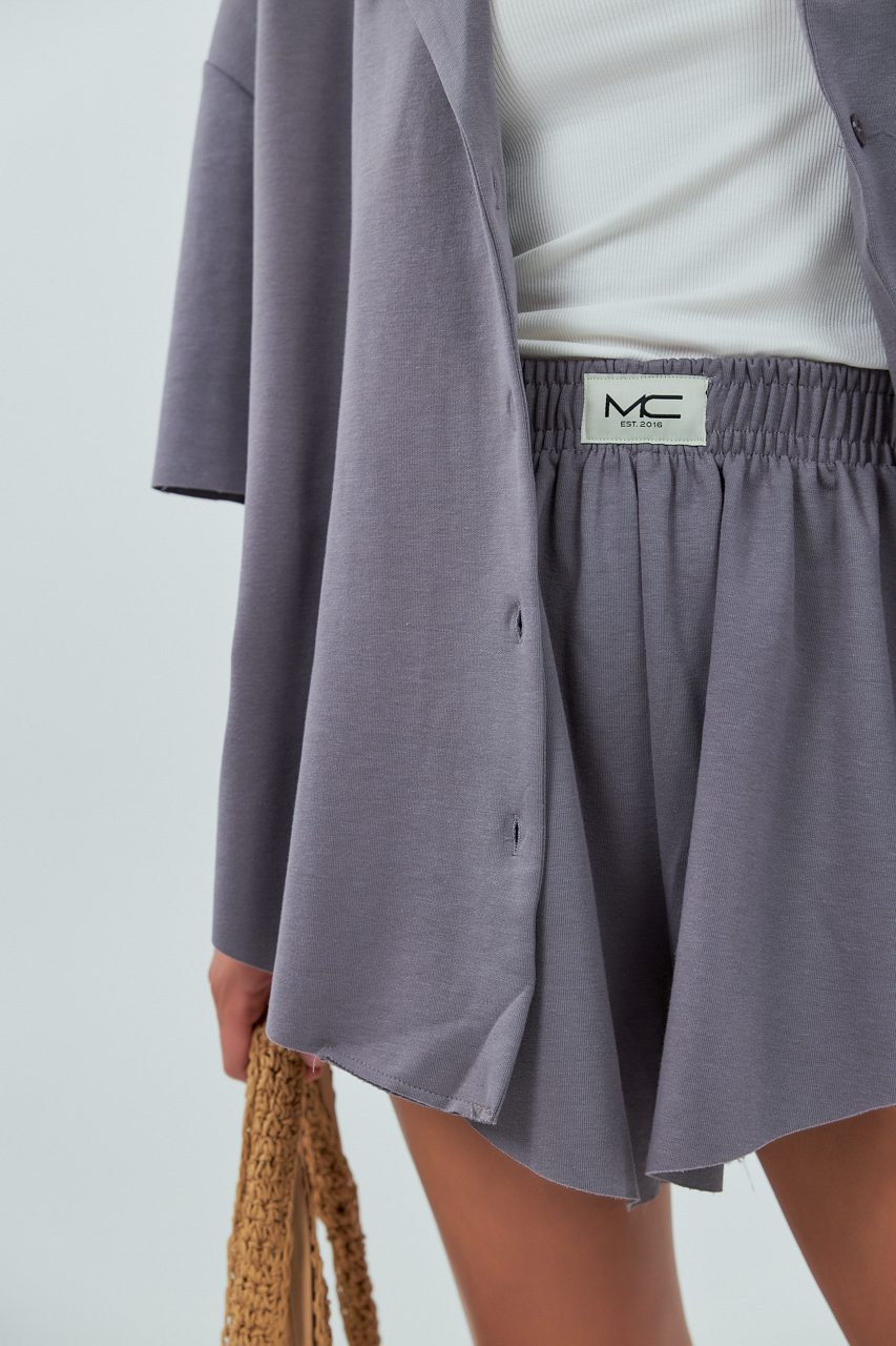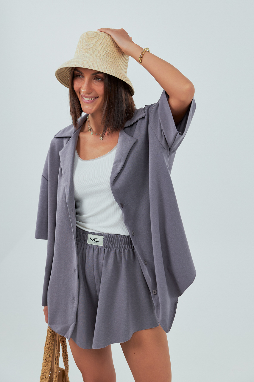 Трикотажний костюм із шортами та сорочкою — це комфортний і стильний комплект, що поєднує затишок трикотажу з елегантністю продуманого крою.
