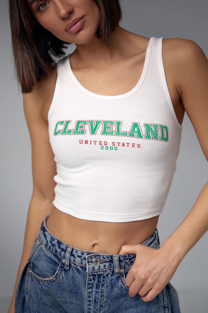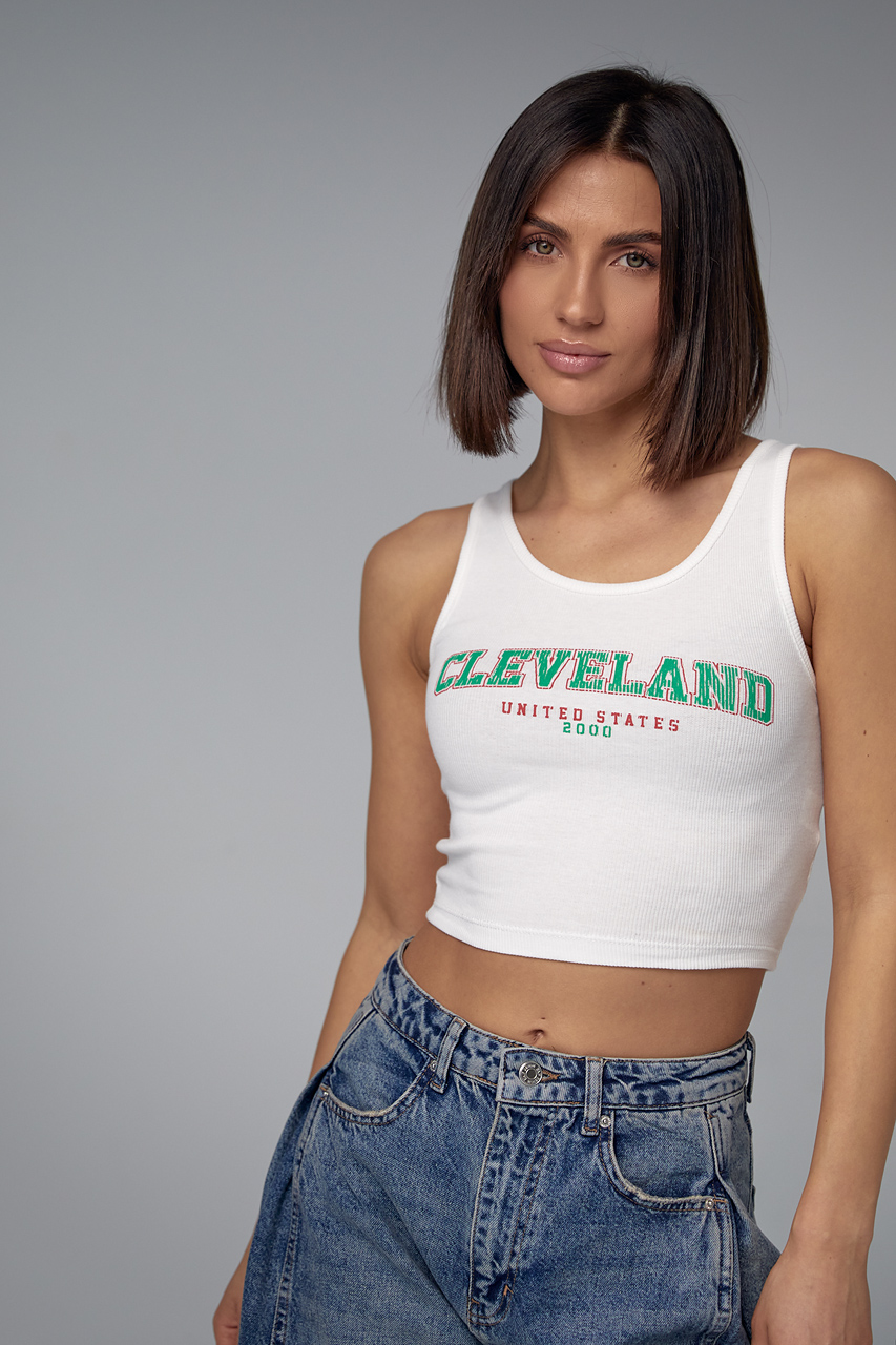 Доступные размеры :[M, L] Размер L:Довжина переду виробу, см: 42смШирина під проймами рукавів (над грудьми), см: 32смРазмер M:Довжина переду виробу, см: 41смШирина під проймами рукавів (над грудьми), см: 30смСтильний топ в рубчик з принтом у два раху.. Читать полностью
