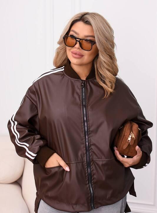 Ветровка женская из экокожи свободного кроя на молнии с карманами весенняя k-127897