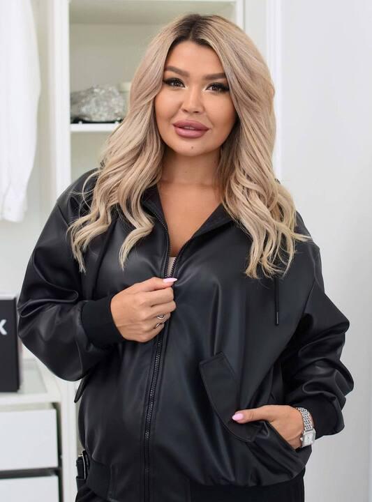 Отзывы о Ветровка-бомбер женская из эко кожи на байке с капюшоном на молнии средняя весенняя k-127937