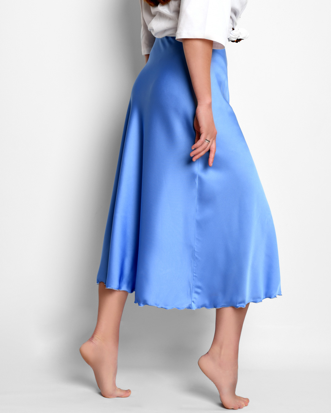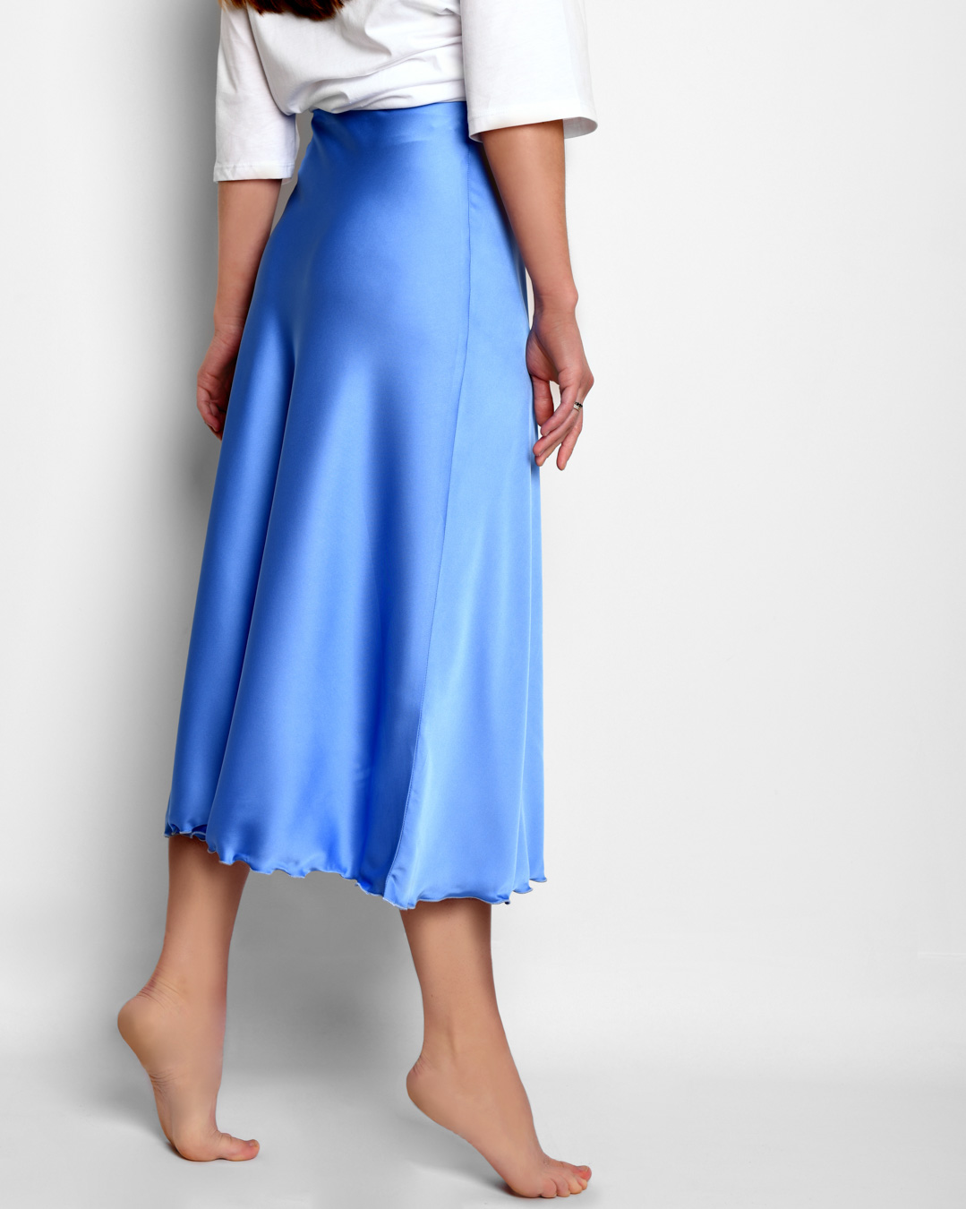 Стильная шелковая юбка. Миди длина. Высокая посадка. Застёгивается на тайную молнию. Прекрасно сочетается с футболками, блузками, худи. Подходит под уличный и романтичный стиль.
