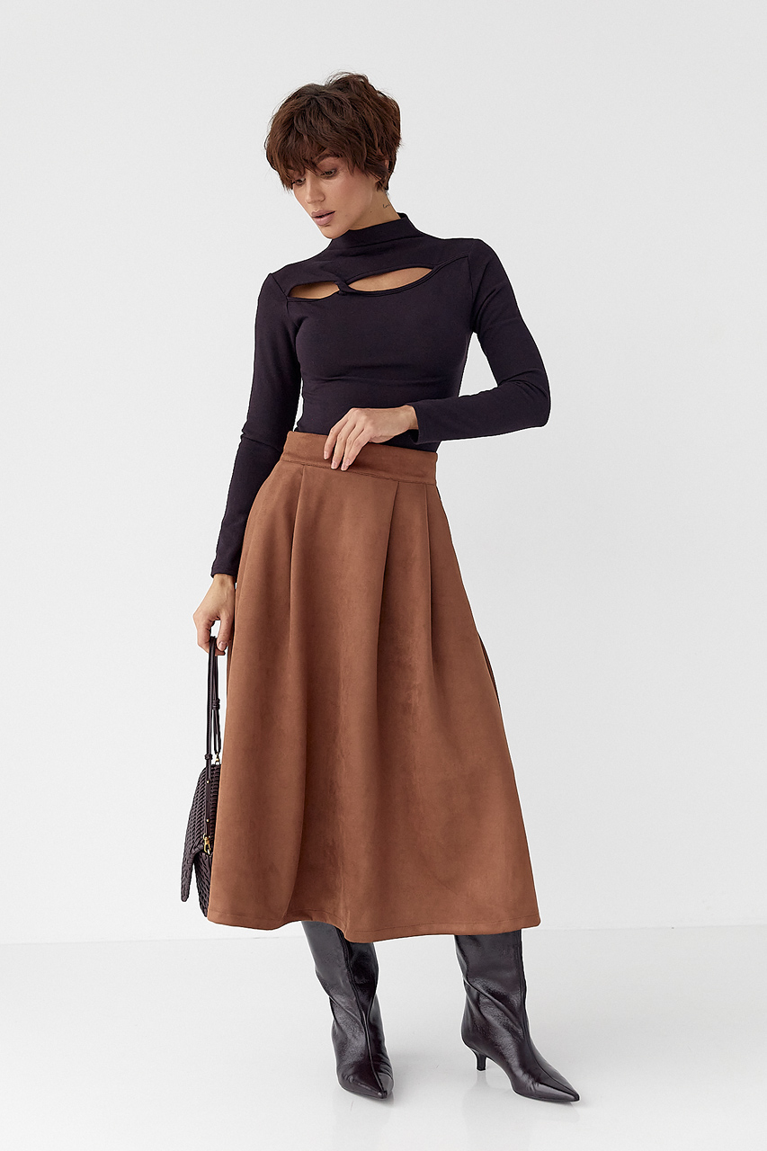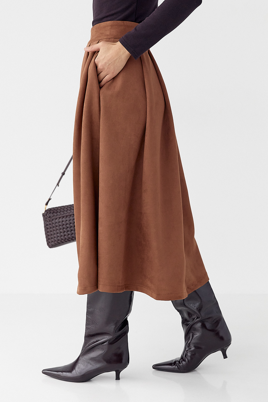Доступные размеры :[S, M] Размер S:Ширина по талії/поясу, см: 34смДовжина виробу, см: 81смРазмер M:Ширина по талії/поясу, см: 36смДовжина виробу, см: 81смЗамшева міді спідниця — ефектна та жіночна модель з акцентом на силует. Пишний фасон формується .. Читать полностью