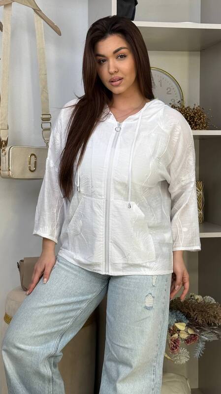 Кардиган женский льняной на молнии с капюшоном и карманами оверсайз весенний k-128825