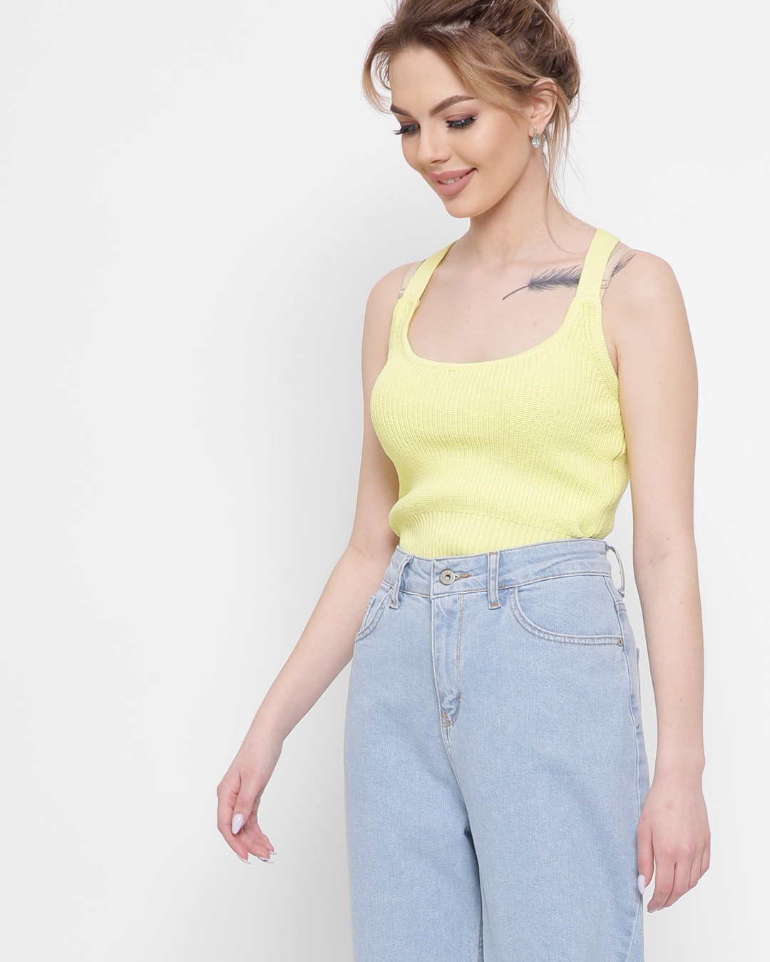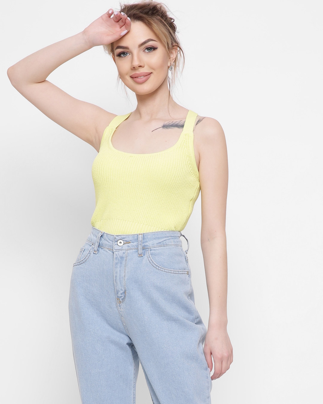 Доступные размеры :[ONE SIZE] Размер ONE SIZE:Рост модели:170 смДлина изделия:46Летний топ из мягкой и приятной для тела ткани. Глубокий вырез на бретельках скрещенных на спине в виде буквы "Х". Топ обтягивающего силуэта идеально сядет по фигуре. Соч.. Читать полностью