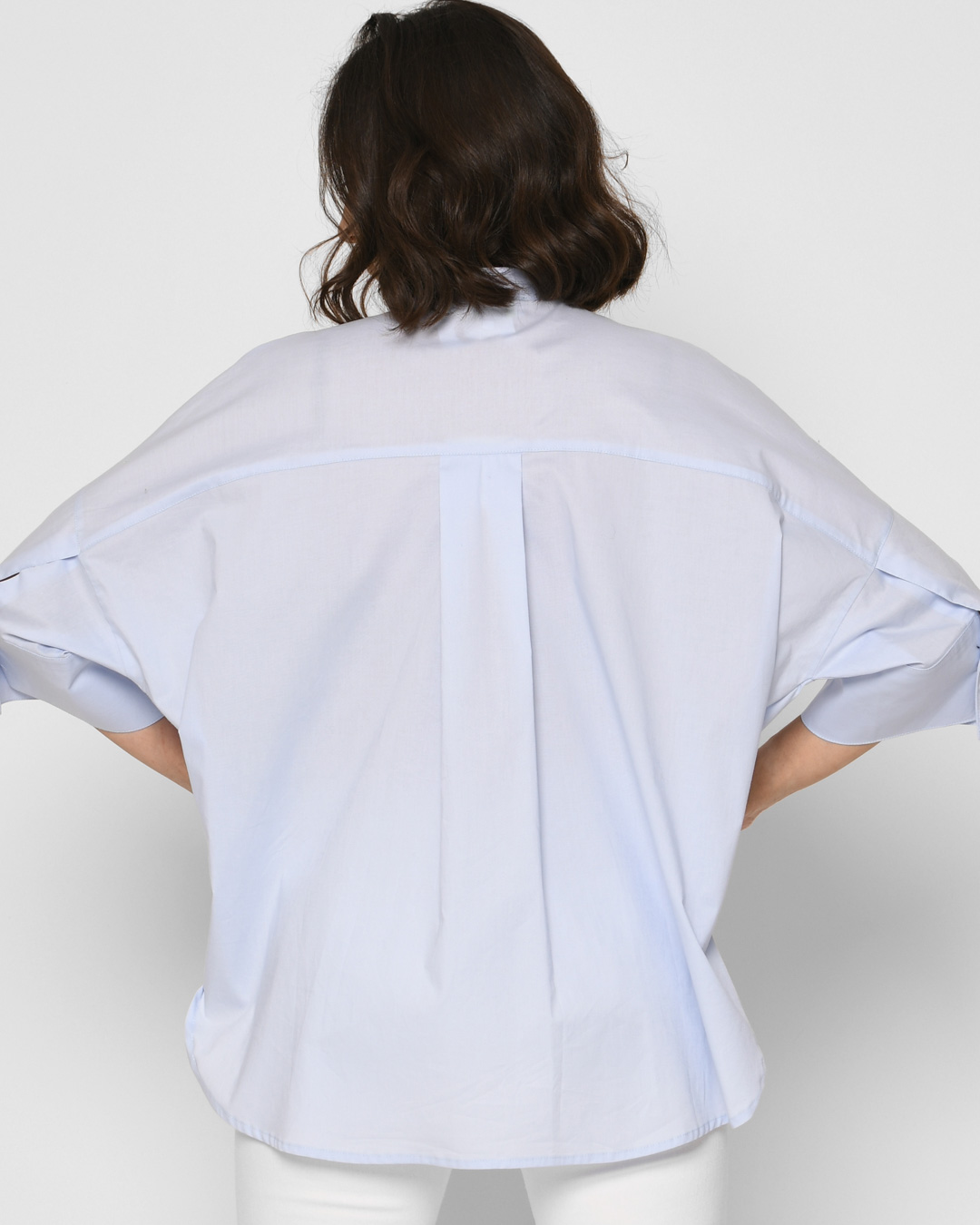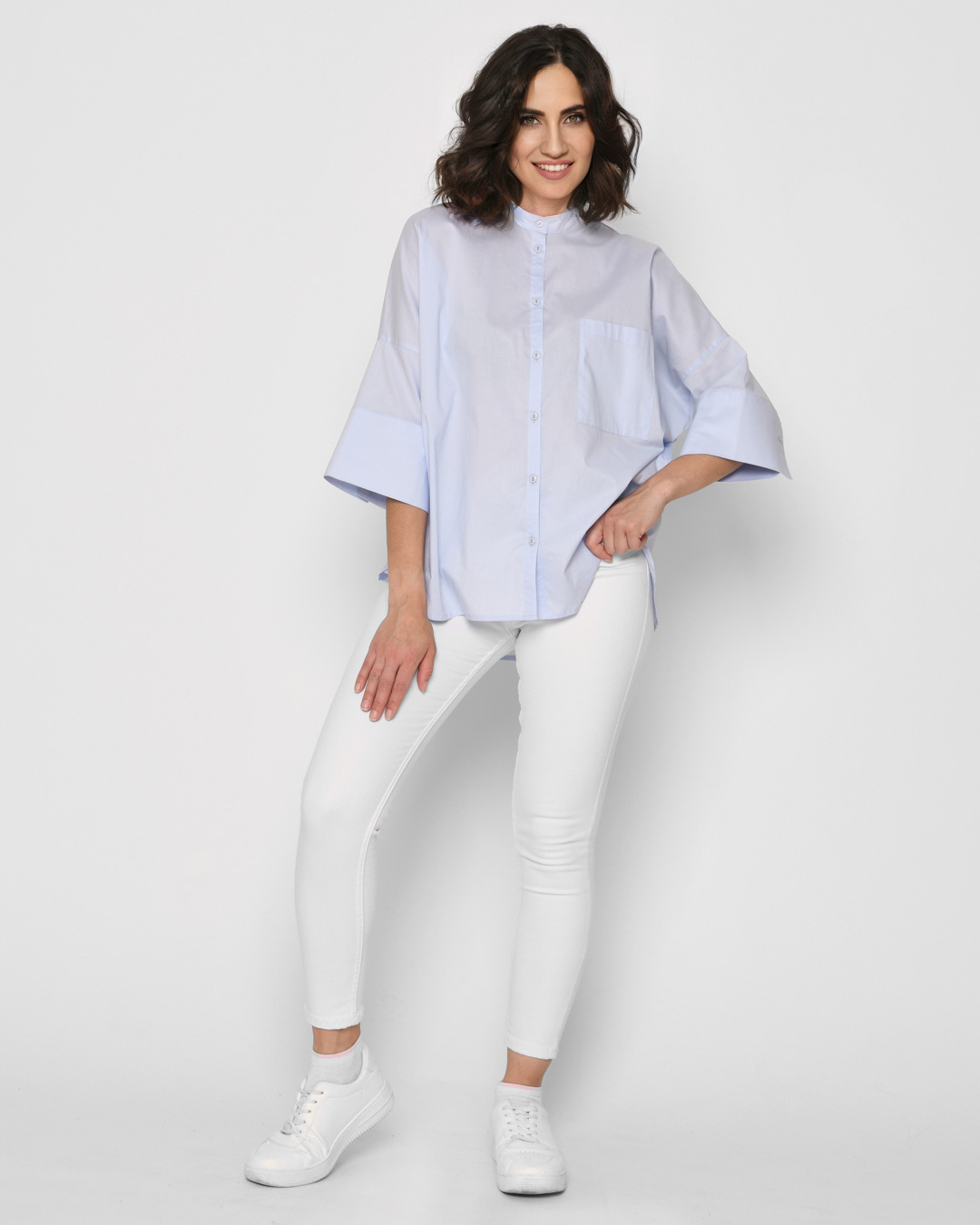 Доступные размеры :[XS] Размер XS:Рост модели:170 смДлина изделия:71Длина плеча:30Длина рукава:21Обхват груди:134Ширина плечей:65Стильная рубашка для создания легкого, непринужденного образа. Модель имеет свободный фасон с рукавом 3/4 и манжетой на п.. Читать полностью