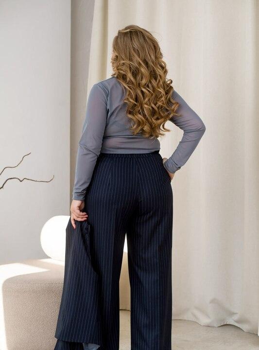 Фасон палаццо придаёт брюкам особую лёгкость и благородство. Они красиво ниспадают от талии, создают мягкие вертикальные линии и делают фигуру более стройной и гармоничной. Стрелки усиливают этот эффект, добавляют образу аккуратности и подчёркивают классический характер модели. Благодаря такому крою брюки выглядят женственно, современно и очень эффектно в движении.