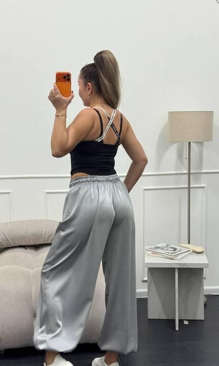Отзывы о Брюки женские палаццо из шелка дабл армани с высокой посадкой на резинке с кулиской широкие весенние k-128269