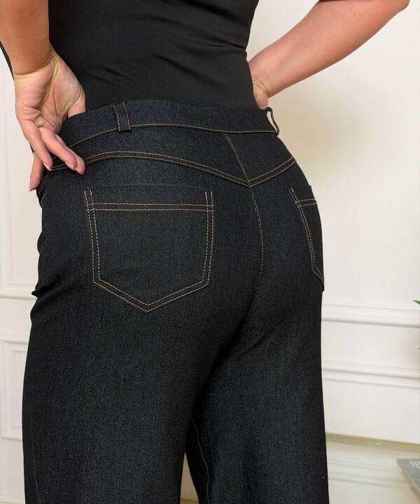 Высокая посадка делает модель особенно удачной для повседневных и более собранных образов. Брюки застегиваются на молнию и пуговицу, благодаря чему посадка выглядит аккуратной и надежной. Широкий крой к низу визуально удлиняет ноги, делает силуэт более гармоничным и добавляет образу легкости. Дополнительным удобством становятся два задних кармана, которые делают модель не только стильной, но и практичной.