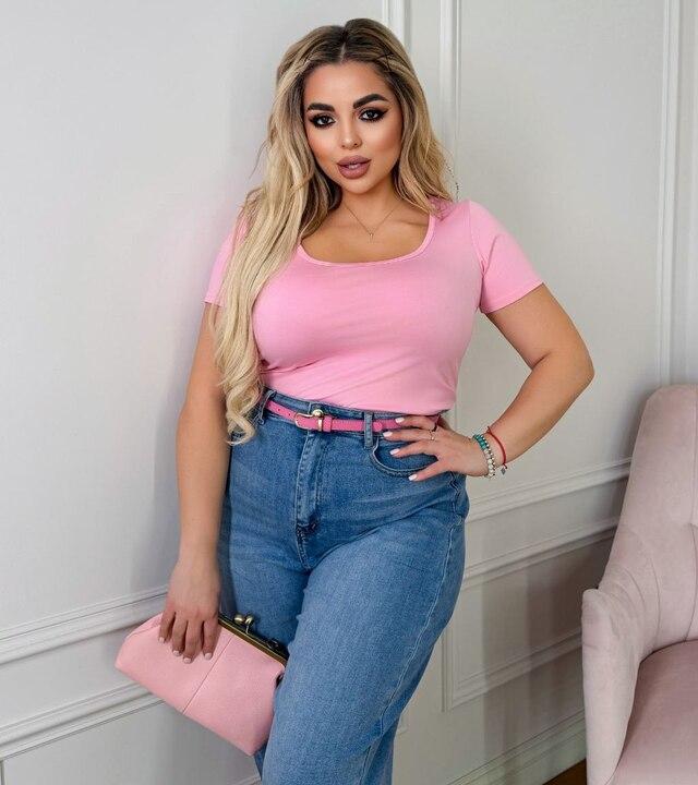 Модель прекрасно сочетается с джинсами высокой посадки, классическими брюками, юбками и жакетами, поэтому позволяет создавать как расслабленные, так и более элегантные образы. Это удачный выбор для тех, кто хочет пополнить гардероб действительно универсальной, практичной и визуально привлекательной вещью. Футболка смотрится свежо, подчёркивает женственность и помогает быстро собрать красивый образ без лишних усилий.