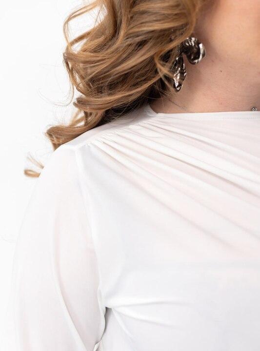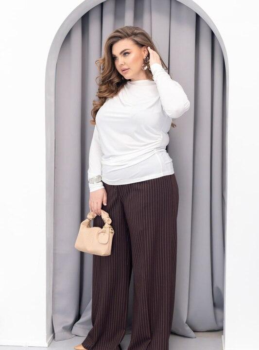 Трикотаж масло ценят за мягкость, эластичность и приятные ощущения в носке. Такая ткань красиво ложится по фигуре, не создает лишнего объема, хорошо тянется и обеспечивает комфорт в течение всего дня. Материал выглядит аккуратно, помогает сохранить красивую посадку и делает изделие практичным выбором для гардероба, где особенно важны удобство, универсальность и стильная лаконичность. Лонгслив хорошо комбинируется с брюками, джинсами, юбками, жилетами, пиджаками и кардиганами, поэтому быстро становится действительно нужной вещью на каждый день.